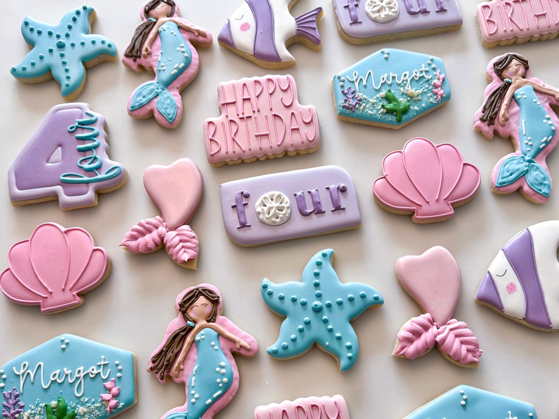 - Custom-mixed icing colors to match your theme, with 4-5 icing colors.